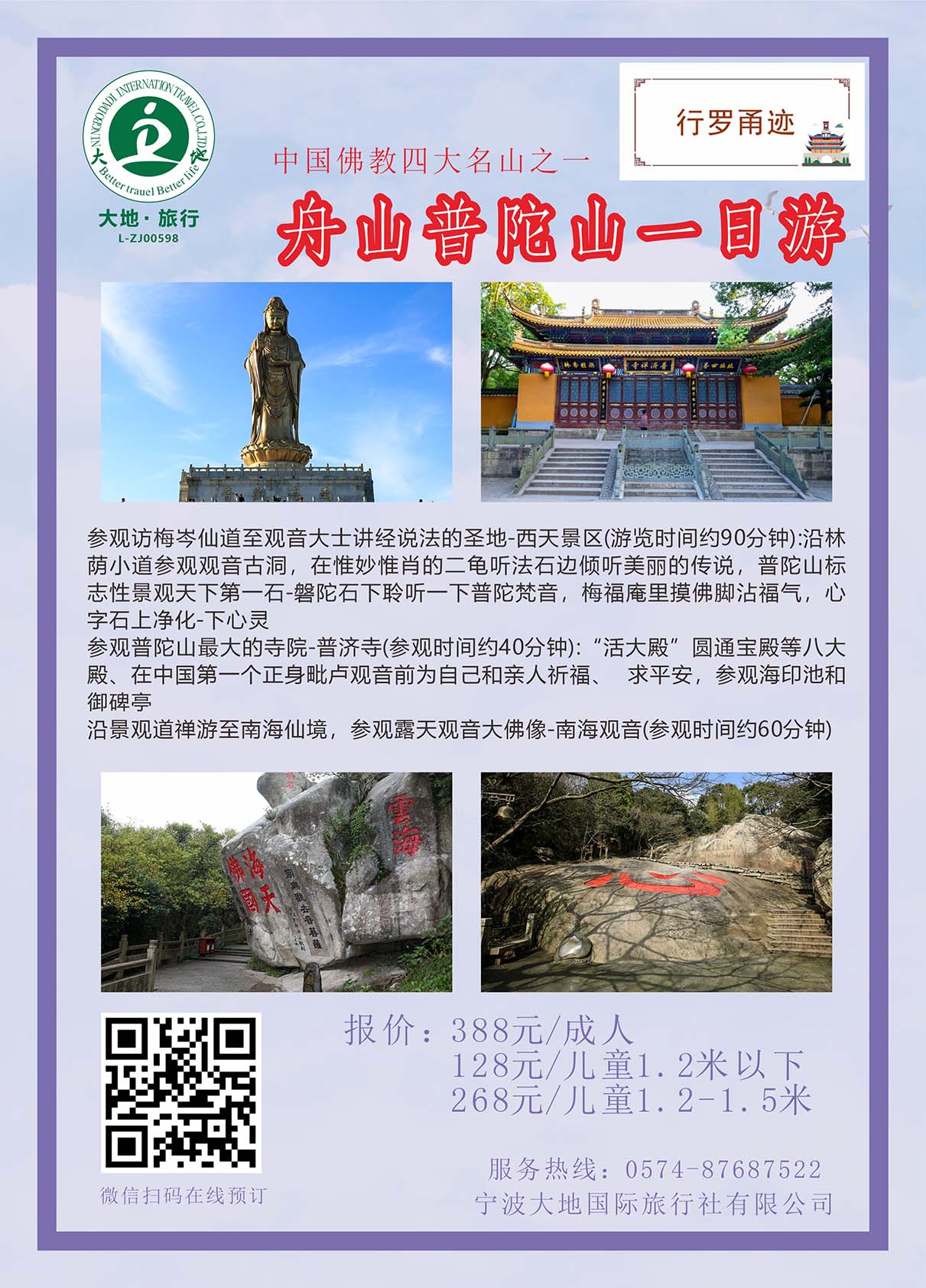 总之,走进普陀山,你将领略到壮丽的海景和宁静的寺庙。这个地方既有大自然的美景,又有佛教文化的熏陶,是一个让人心灵得到净化和放松的绝佳去处。如果你想远离尘嚣,不妨来普陀山一游,领略心灵的安宁。