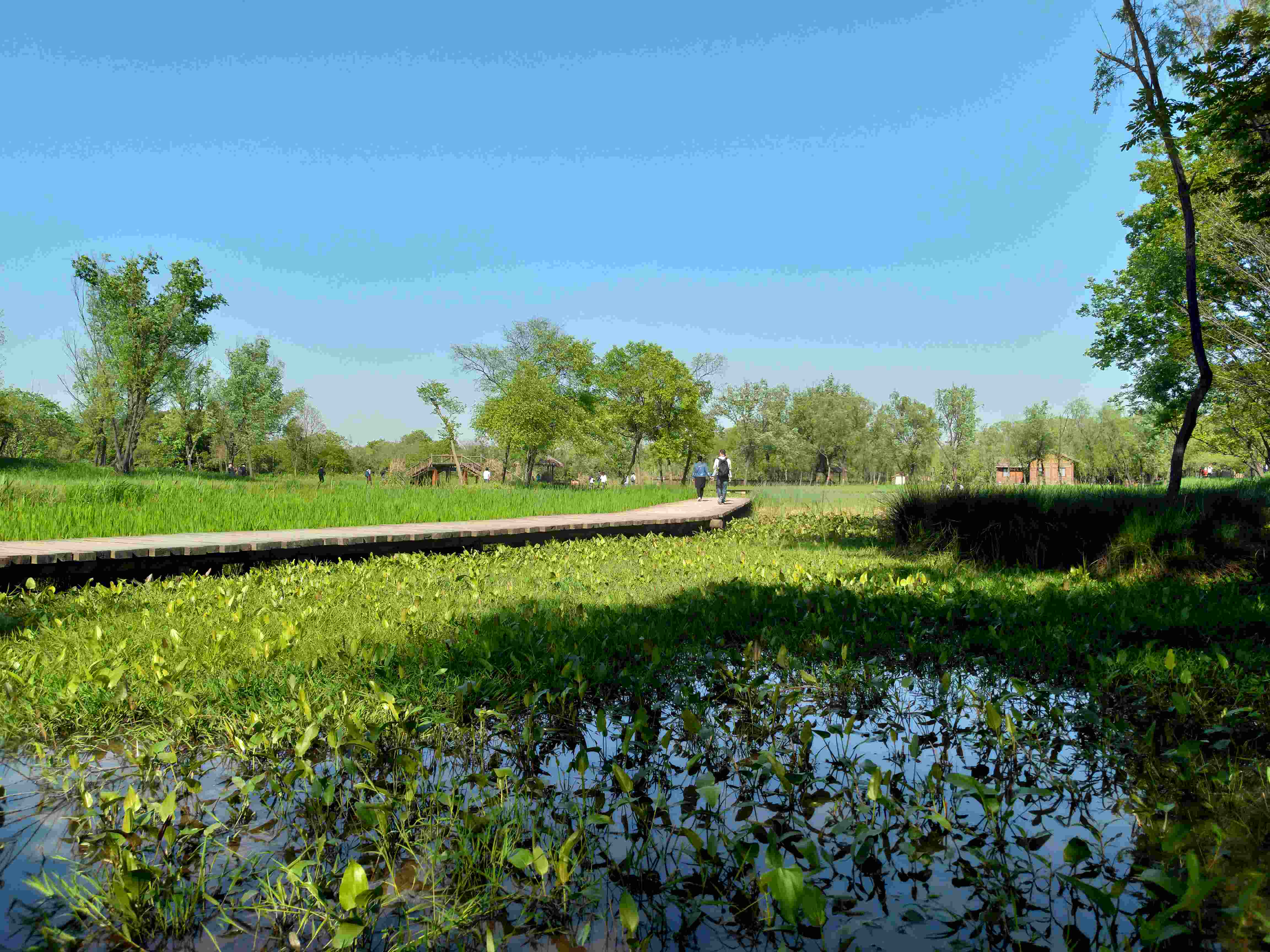 浙江杭州西溪国家湿地公园,位于浙江省杭州市西湖区和余杭区交界处,距西湖不到5千米,规划总面积11.5平方千米,湿地内河流总长100多千米,约70%的面积为河港、池塘、湖漾、沼泽等水域。湿地公园内生态资源丰富、自然景观幽雅、文化积淀深厚,与西湖、西泠并称杭州“三西”。是中国第一个集城市湿地、农耕湿地、文化湿地于一体的国家级湿地公园。